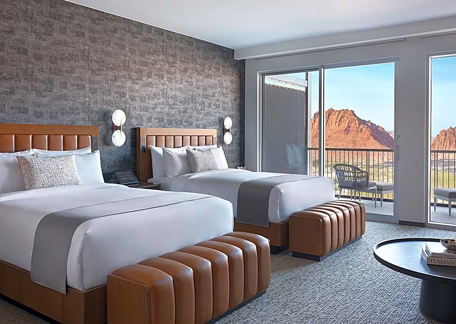 Our Stylishly Furnished Two Queen Guestrooms Feature: - Italian linens - Luxury bath amenities - Curated pillow menu - Plush top mattress - State of the art in room technology - Private furnished balcony/patio
