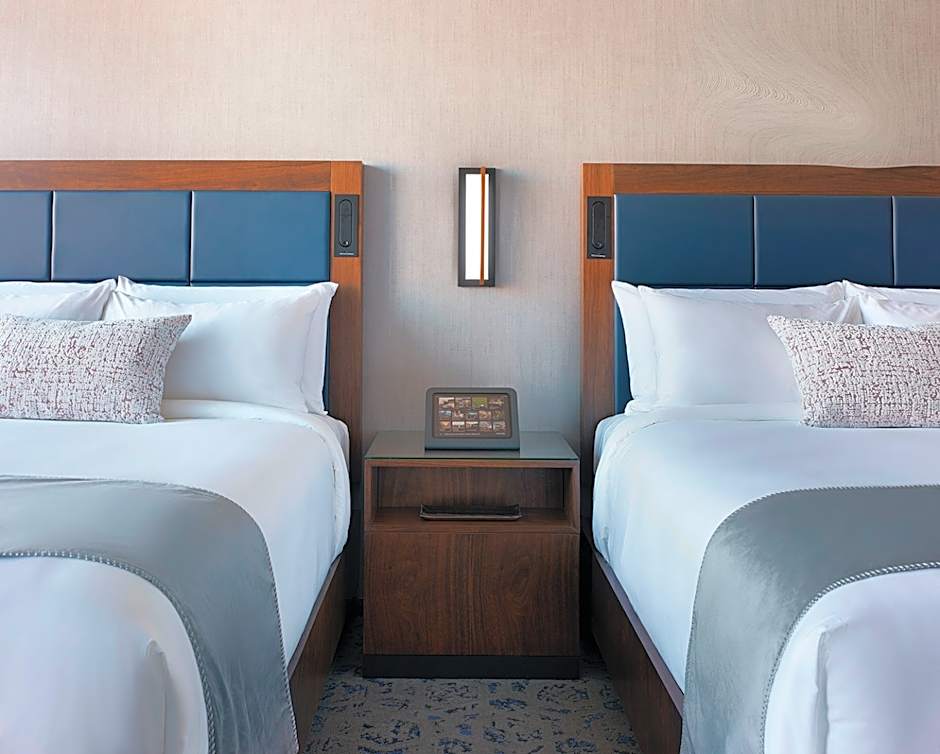 Our Stylishly Furnished Two Queen Guestrooms Feature: - Italian linens - Luxury bath amenities - Curated pillow menu - Plush top mattress - State of the art in room technology - Private furnished balcony/patio